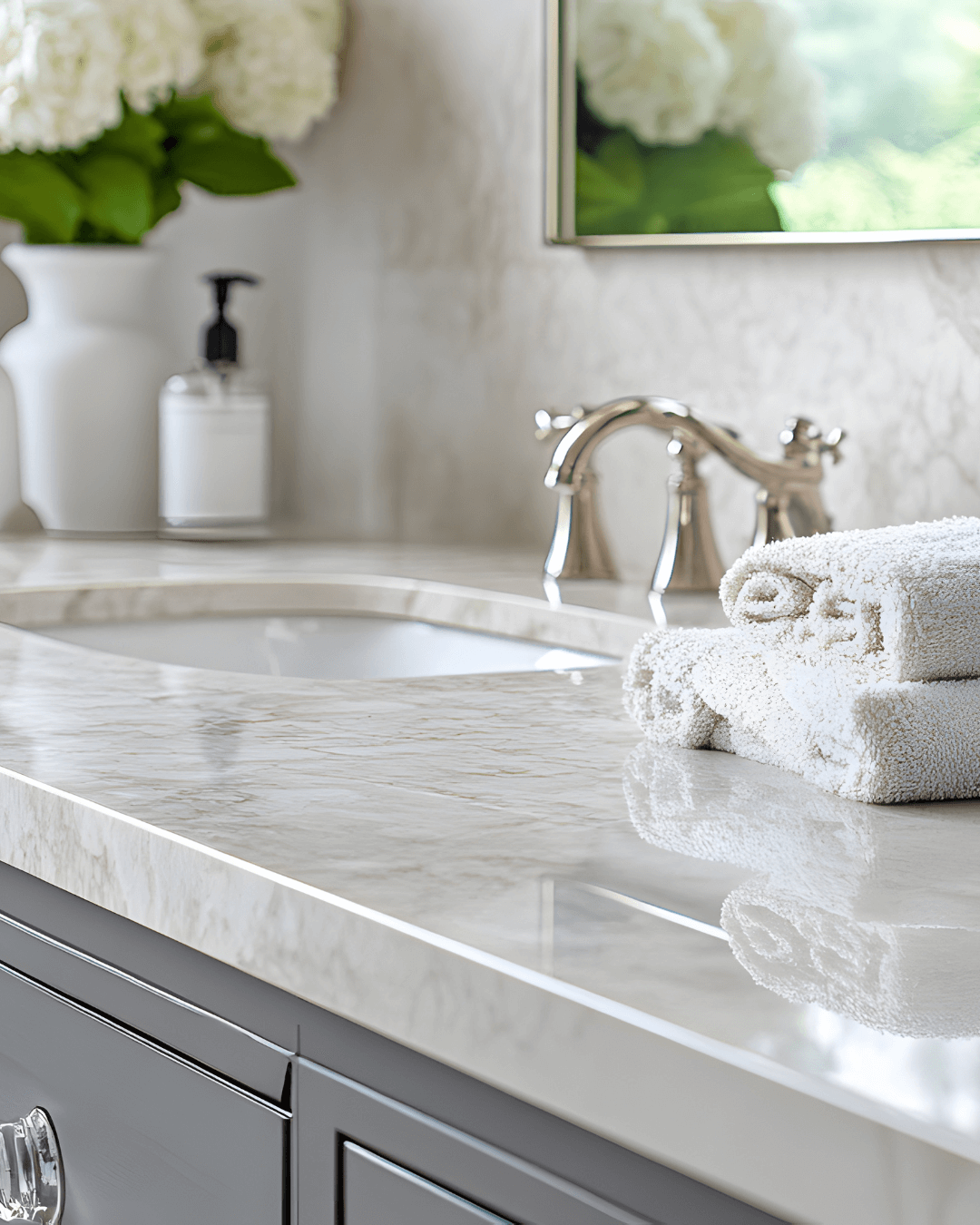 Our eco-friendly countertops are made from recycled materials, providing a sustainable option for environmentally conscious consumers. These countertops are not only beautiful but also contribute to reducing waste and conserving resources.